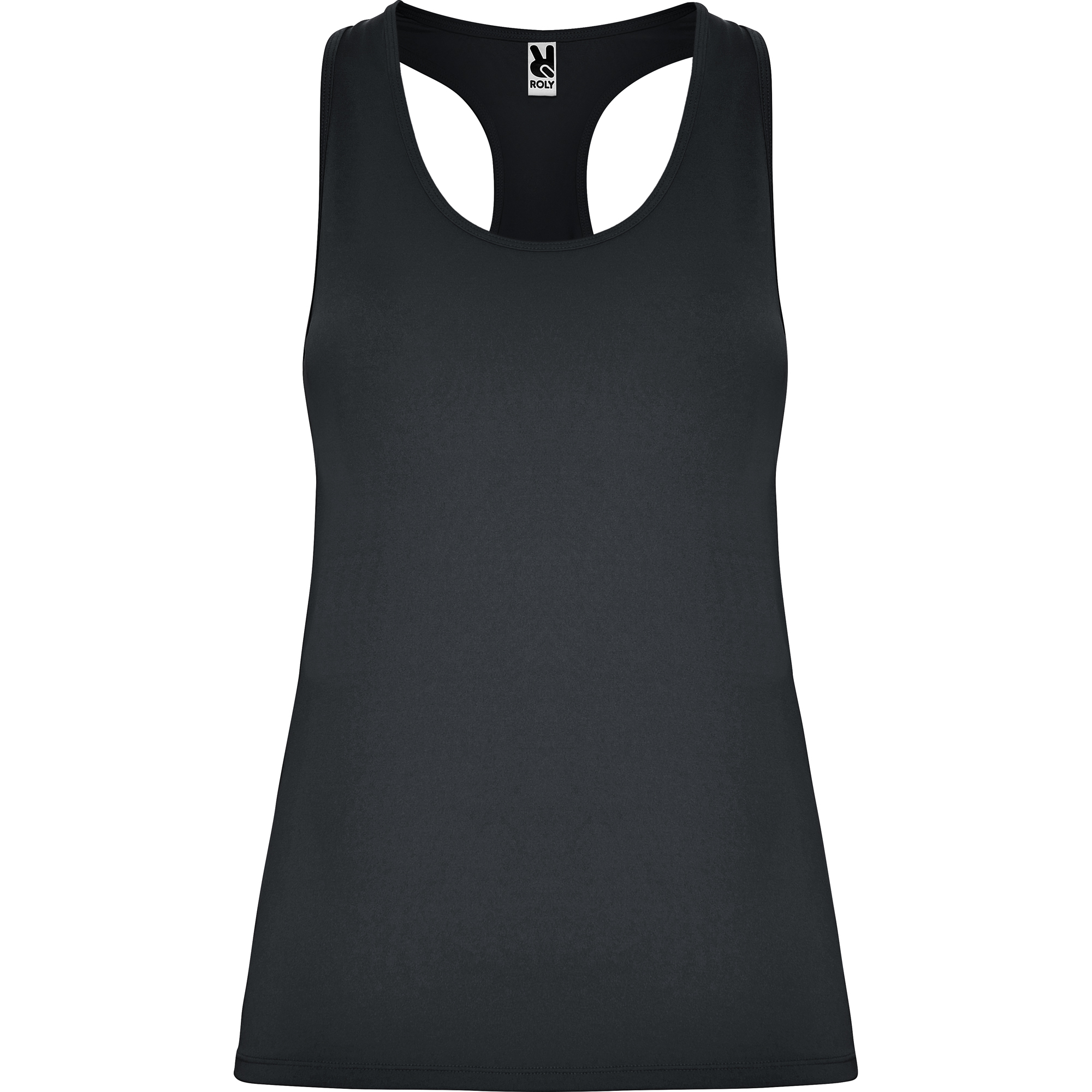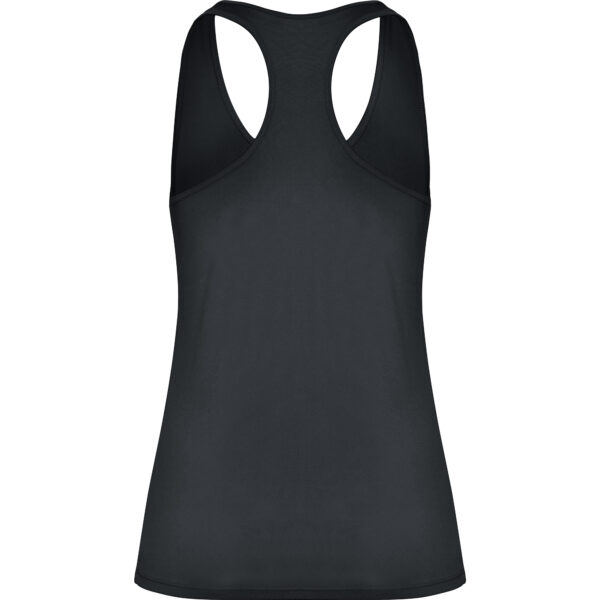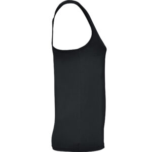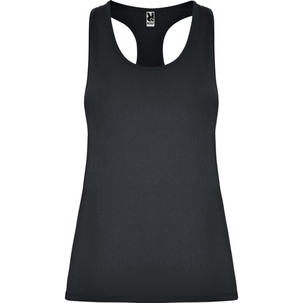 Camiseta técnica de tirantes entallada transpirable y elástica. Acabado piel de melocotón. Cuello redondo y sisas ribeteados del mismo tejido al tono. Espalda de nadadora.