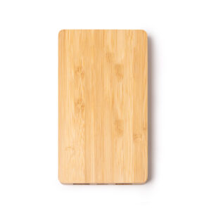 Batería externa recargable de 8000mAh, con cuerpo elaborado en bambú y base de fibras naturales. Con puerto Tipo C de entrada y salida y dos puertos de salida USB. Cuenta con indicador luminoso de encendido.