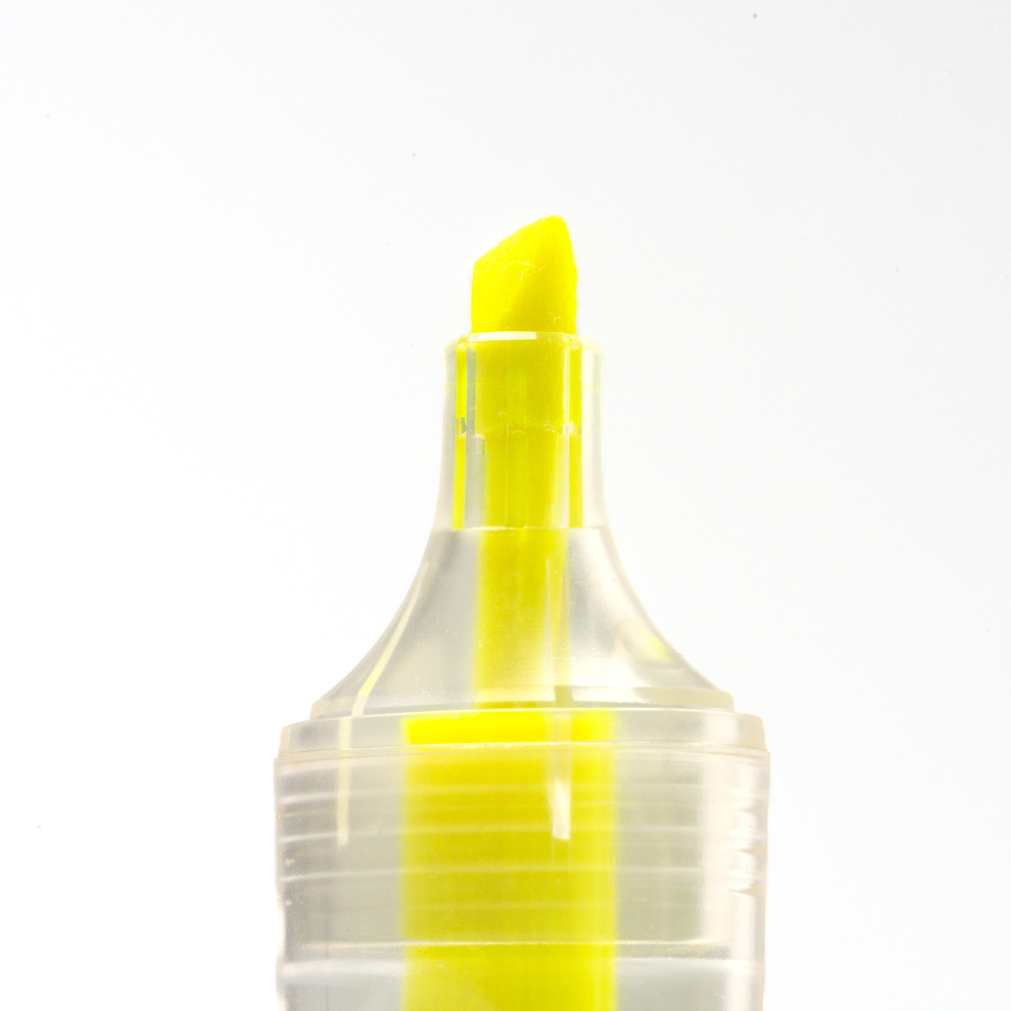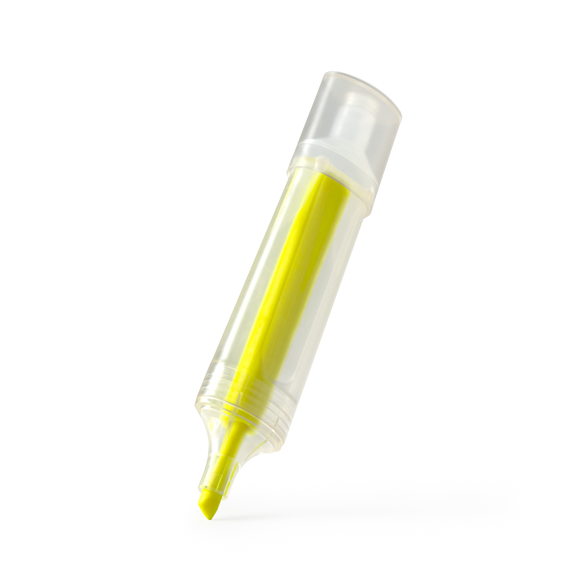 Marcador amarillo flúor realizado en plástico reciclado RPET con diseño traslúcido.