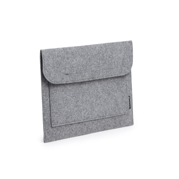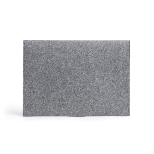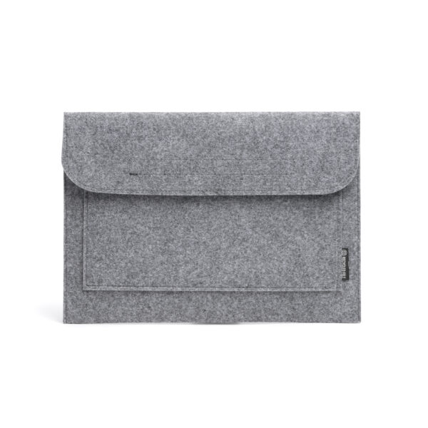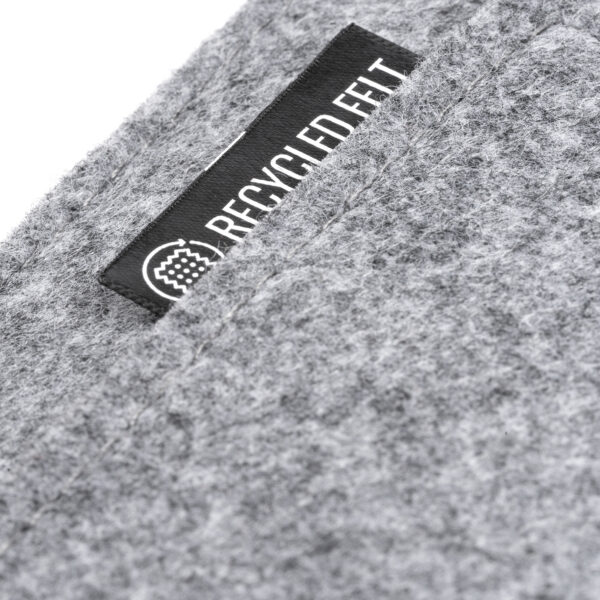 Funda para portátil de 15″ realizada en fieltro reciclado con diseño vigoré, una opción perfecta para proteger tu portátil de manera segura y sostenible. La funda cuenta con dos compartimentos adicionales que te permiten guardar accesorios y documentos y solapa con cierre de velcro. Esta funda brinda una opción adicional para la protección de tu dispositivo.