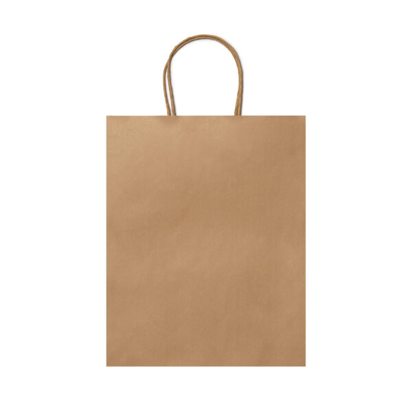 Bolsa de papel en acabado natural 110 g/m². Asa cortas reforzadas en diseño rizado.