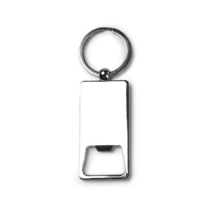 Llavero con función abridor de bambú y metal cromado.