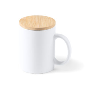 Taza de cerámica con capacidad de 370 ml. Diseño en acabado mate y tapa de bambú. Es la taza perfecta para regalar.