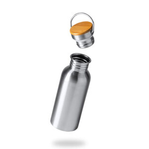Bidón de acero inoxidable 304 y bambú. Blanco especial para marcar en sublimación. Capacidad 620 ml. Personalízalo a tu gusto, para regalar a tus clientes.