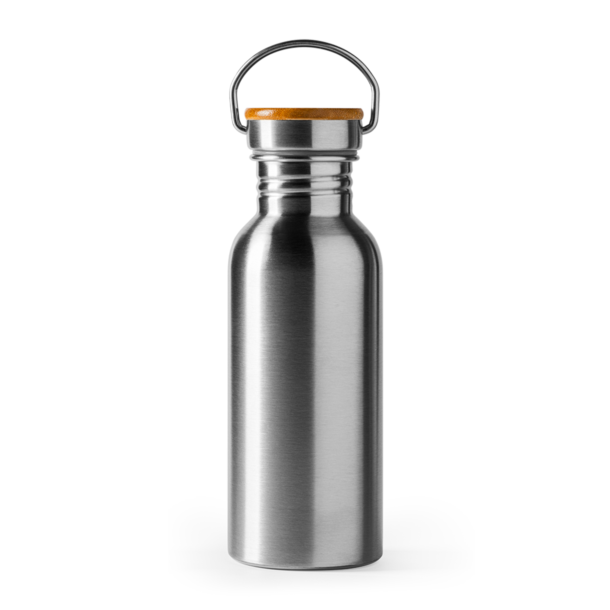 Bidón de acero inoxidable 304 y bambú. Blanco especial para marcar en sublimación. Capacidad 620 ml. Personalízalo a tu gusto, para regalar a tus clientes.