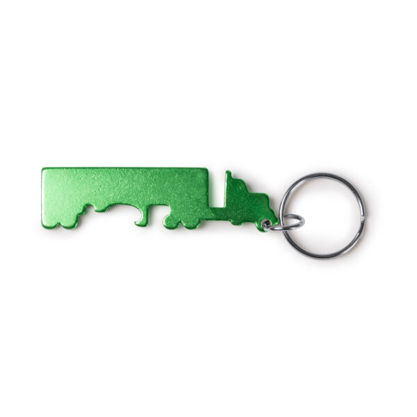 Llavero abridor en forma de camión realizado en aluminio reciclado.Composición: Aluminio recicladoObservaciones: Presentación en bolsa kraft individual.