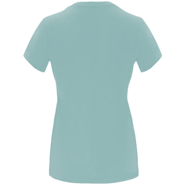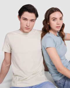 Camiseta de manga corta entallada en cintura. Cuello redondo en canalé 1×1. Cubrecosturas en cuello del mismo tejido.