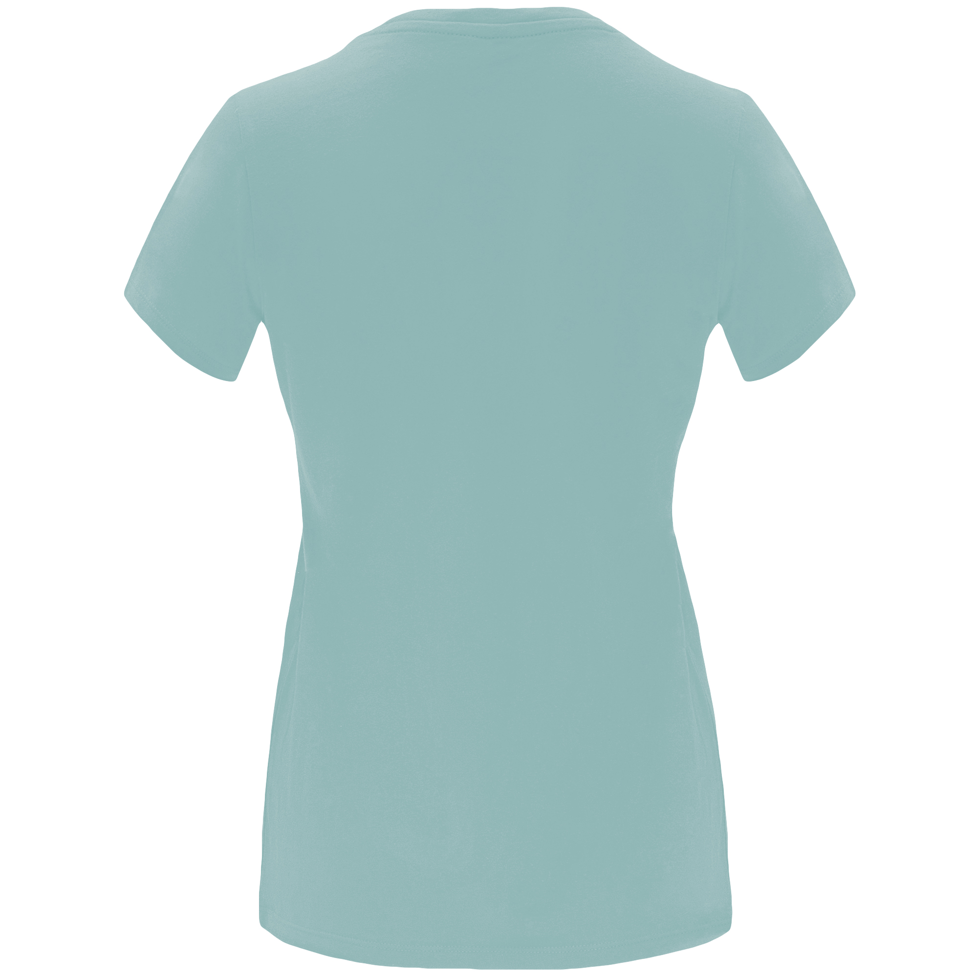 Camiseta de manga corta entallada en cintura. Cuello redondo en canalé 1×1. Cubrecosturas en cuello del mismo tejido.