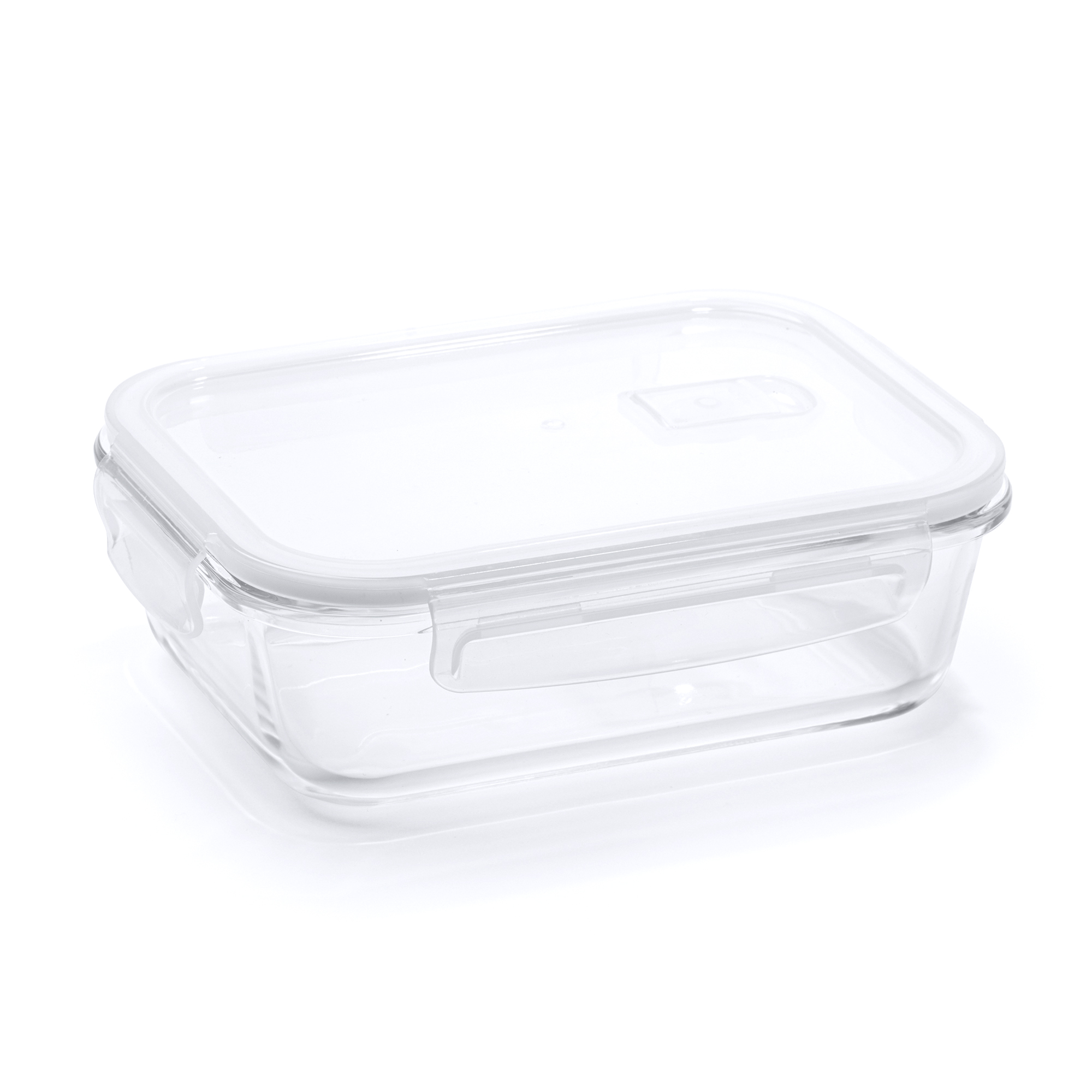 Fiambrera de cristal borosilicato con tapa hermética y apta para microondas para llevarte tu comida favorita a la oficina, a la escuela, o a cualquier lugar. Capacidad de 1 L.
