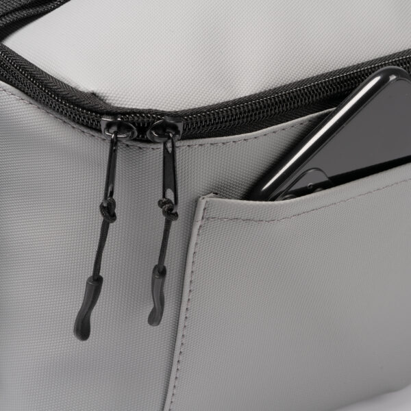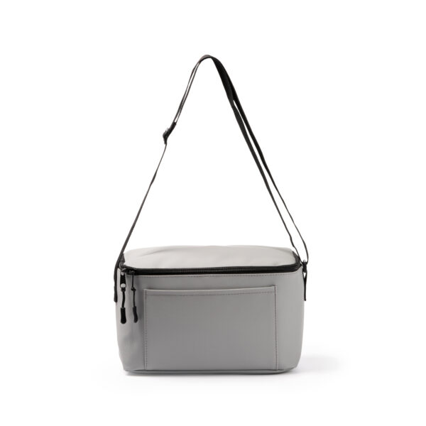 Nevera realizada en PU Leather con cinta de transporte ajustable. Cuenta con un compartimento interior isotérmico además de un práctico bolsillo exterior frontal para el transporte de enseres de menor tamaño. Su composición la hace un opción resistente y elegante.