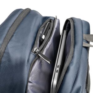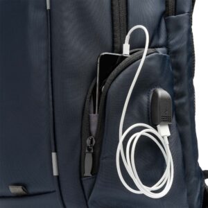 Mochila realizada en nylon. Con bolsillo interior acolchado ideal para guardar el portátil, además de tiras y espalda acolchadas. Compartimento con salida USB para conectar un power bank (no incluido). Incluye cable micro USB. Cuenta con diferentes bolsillos de pequeño almacenamiento. Gracias a las características y tamaño de la mochila, hacen que sea ideal para el uso diario de oficina o bien para viajar con ella.