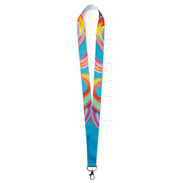 Lanyard de poliéster con mosquetón especial para sublimación. Este producto de confección se realiza bajo pedido. Stock permanente.
