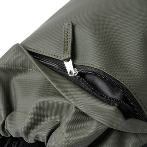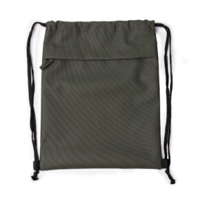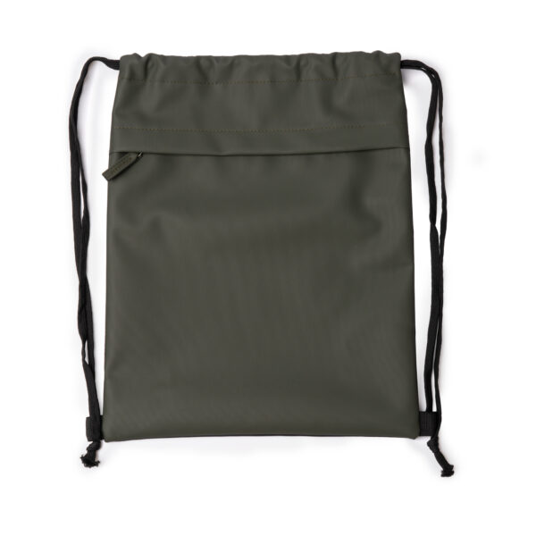 Mochila de cuerdas realizada en PU Leather y poliéster 600D. Cuenta con un bolsillo frontal con cierre de cremallera para los objetos de menor tamaño. Una opción resistente y práctica para el transporte de enseres personales.
