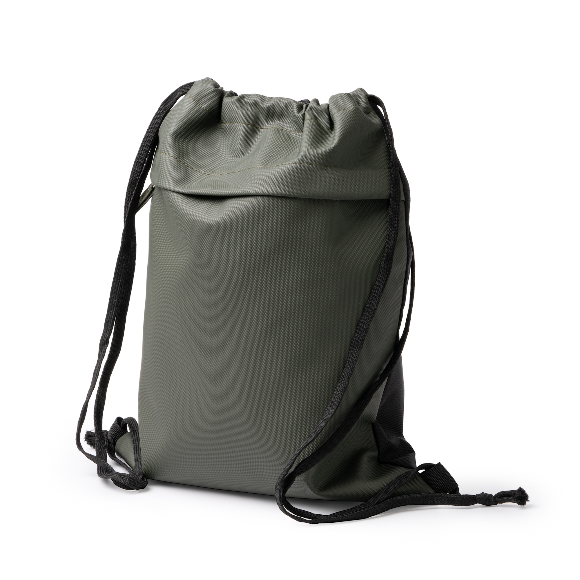 Mochila de cuerdas realizada en PU Leather y poliéster 600D. Cuenta con un bolsillo frontal con cierre de cremallera para los objetos de menor tamaño. Una opción resistente y práctica para el transporte de enseres personales.