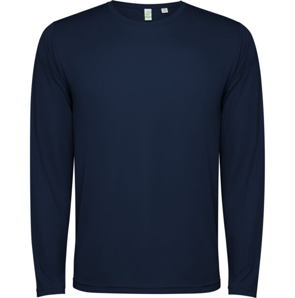 Camiseta técnica manga larga transpirable. Roly Control Dry. Antibacteriano. Faldón trasero. Costuras laterales adelantadas. Cuello redondo y cubrecosturas del mismo tejido al tono. Certificado GRS.