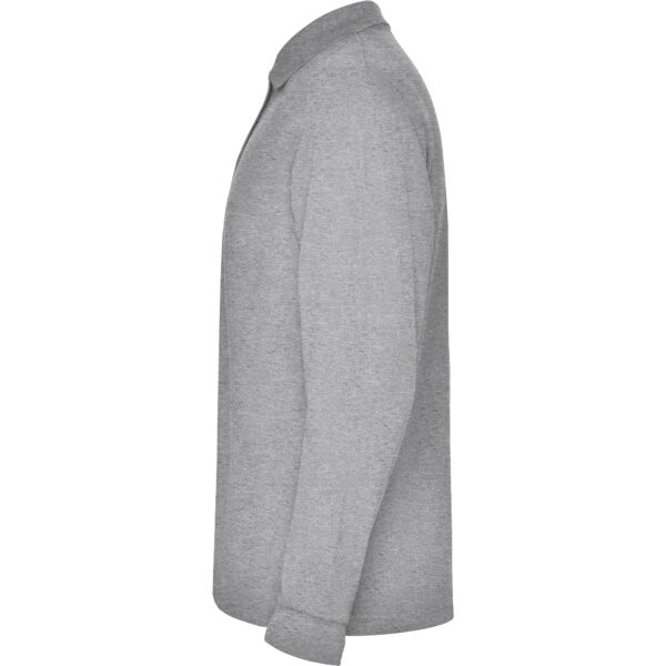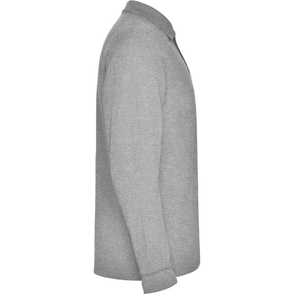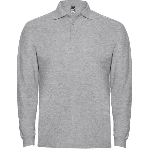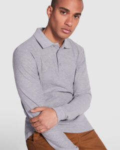 Polo de manga larga de algodón. Punto piqué. Cuello y puños tejidos 1×1. Tapeta de 3 botones. Cubrecosturas en cuello del mismo tejido. Bolsillo opcional.