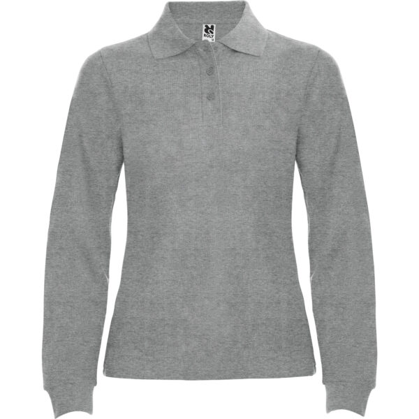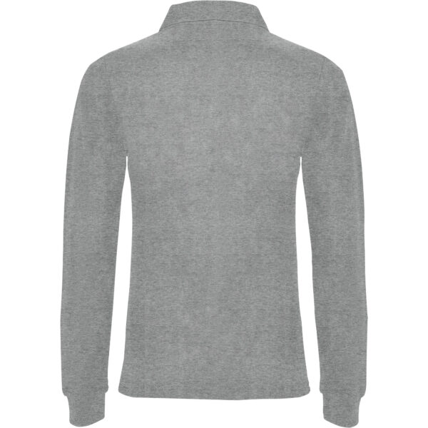 Polo de manga larga de algodón. Punto piqué. Cuello y puños tejidos 1×1. Tapeta de 3 botones. Cubrecosturas en cuello del mismo tejido.