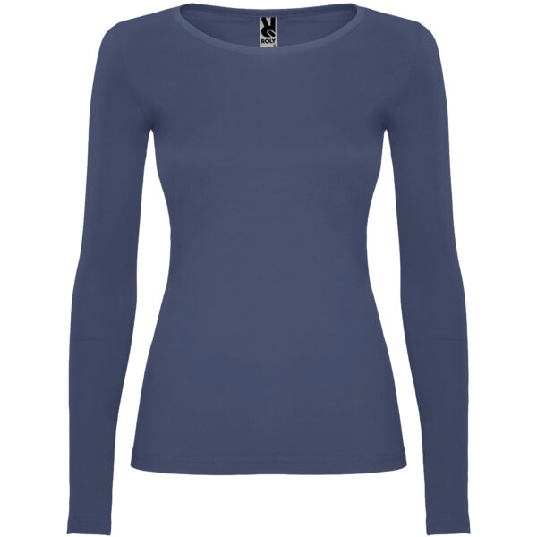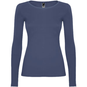 Camiseta de manga larga entallada en cintura. Cuello redondo con ribete del mismo tejido.