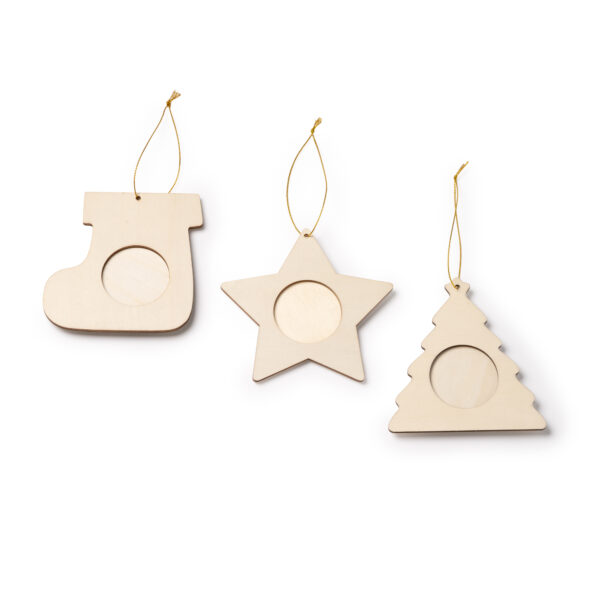 Adorno portafotos navideño de madera con capacidad para fotos de 4,5 cm de diámetro. Perfecto para añadir un toque personalizado y festivo a la decoración durante las fiestas.Composición: Madera