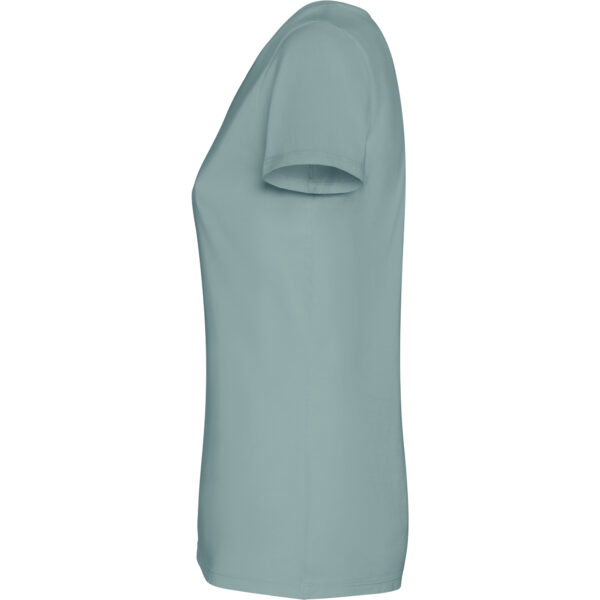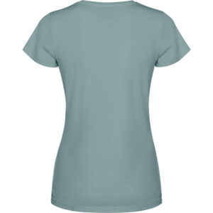 Camiseta woman de manga corta en algodón peinado efecto lavado. Cuello redondo en canalé 1×1. Cubrecosturas en cuello del mismo tejido. Costuras dobles en laterales y sisas.Composición: 100% algodón, 180 g/m².