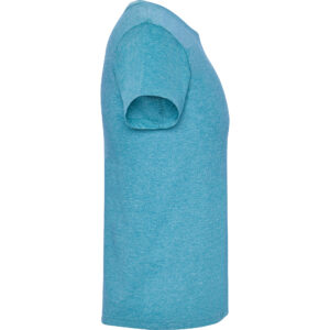 Camiseta de manga corta tubular con acabado vigoré. Cuello redondo en canalé 1×1. Cubrecosturas en cuello del mismo tejido.