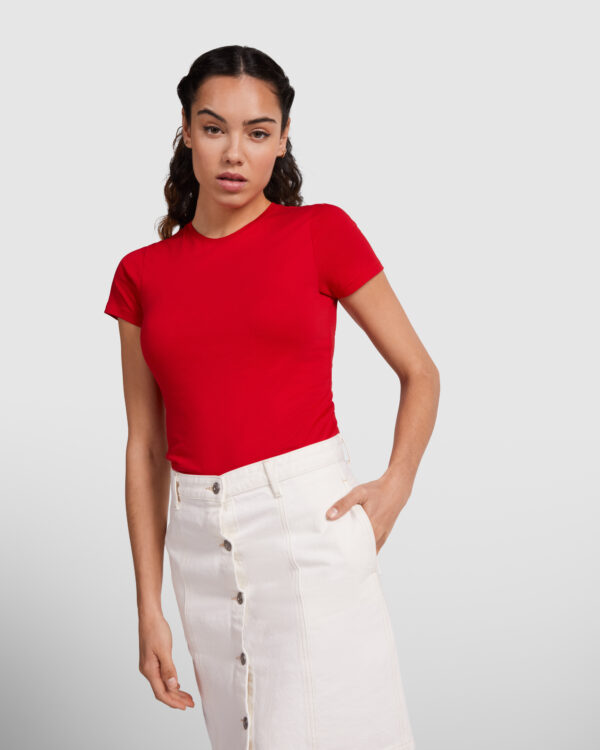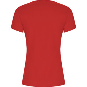 Camiseta de manga corta de algodón peinado orgánico entallada en cintura con certificado GOTS. Cuello redondo en canalé 1×1. Cubrecosturas en cuello del mismo tejido. Costuras decorativas al tono. Certificado GOTS.