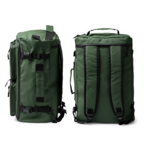 Bolso/mochila multifunción realizado en PU Leather con poliéster 600D Ripstop. Resistente al agua. Gran compartimento principal con apertura completa. Múltiples bolsillos exteriores. Compartimento para calzado. Asa reforzada. Todos los compartimentos cuentan con cremallera impermeable. Incluye cinta acolchada para hombros con funcionalidad de mochila.