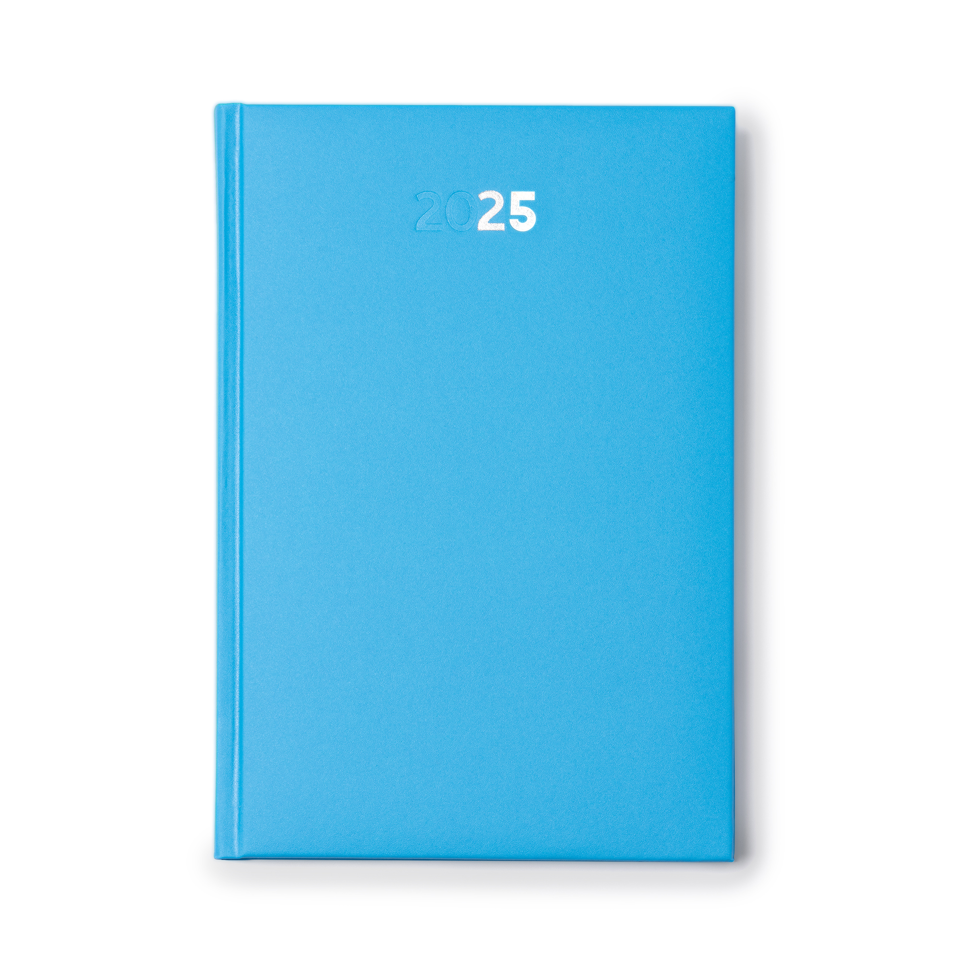 Agenda tamaño A5 con cubierta acolchada grabada en relieve. 320 páginas más 4 páginas con mapas. Marcador de páginas en color a juego con la portada. Gramaje del papel 60gsm. Impresión a color 2+2. Papel interior de color banco.