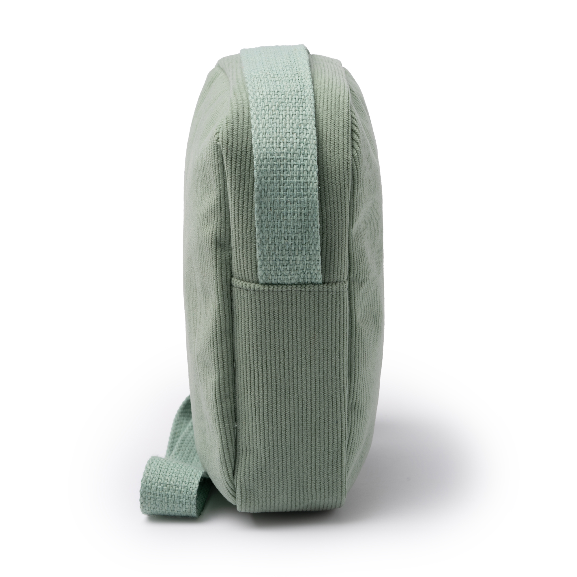 Bandolera realizada en tejido de pana con cierre de cremallera a conjunto en el mismo color. Cinta ajustable a juego y detalles en color metalizado. Es una opción perfecta para el transporte de dispositivos móviles y enseres personales, además de ofrecer comodidad gracias a su cinta ajustable.