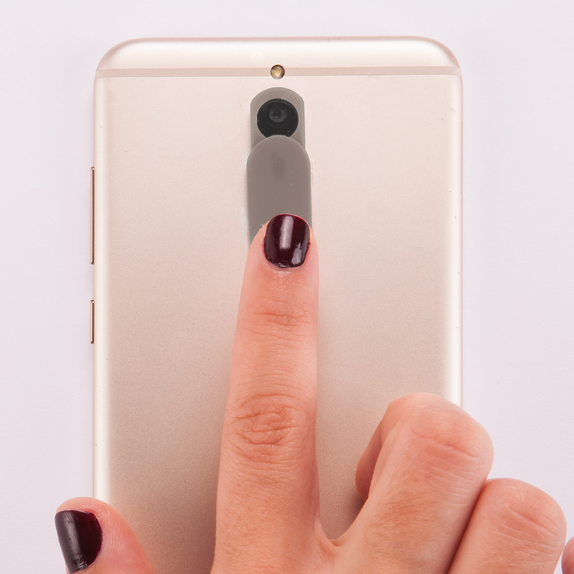 Tapa para cámara de dispositivo móvil o webcam. Con mecanismo deslizante y adhesivo 3M reutilizable.
