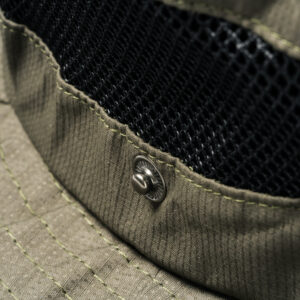 Gorro tipo safari con apertura de ventilación en laterales. Con cinta ajustable.