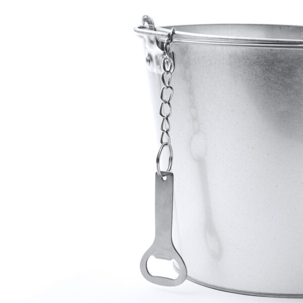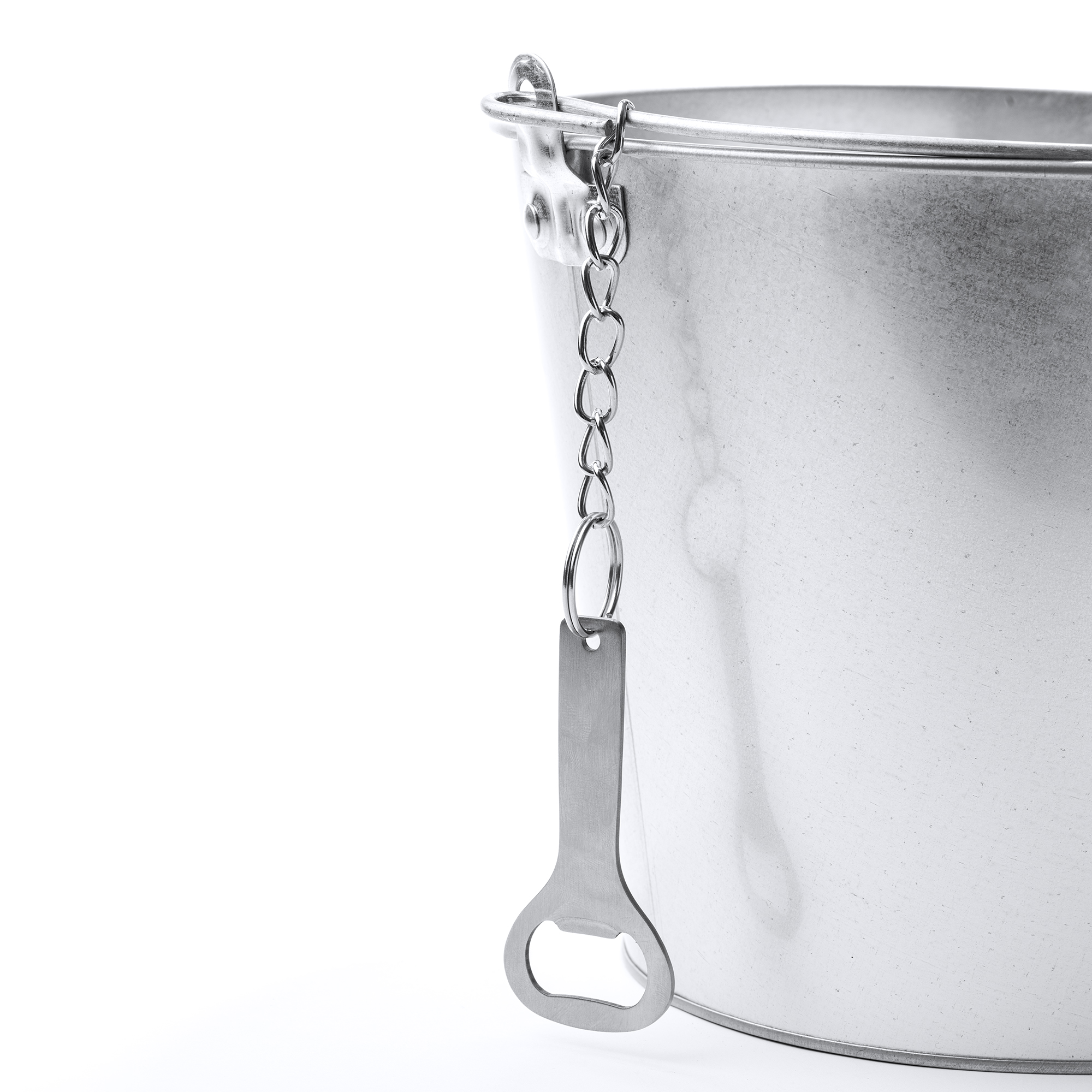 Cubo metálico ideal para mantener frescas las bebidas. Con una capacidad de 6 litros, incluye un abridor muy fácil de usar. Ideal para tu negocio. Composición: Metal y aluminio.