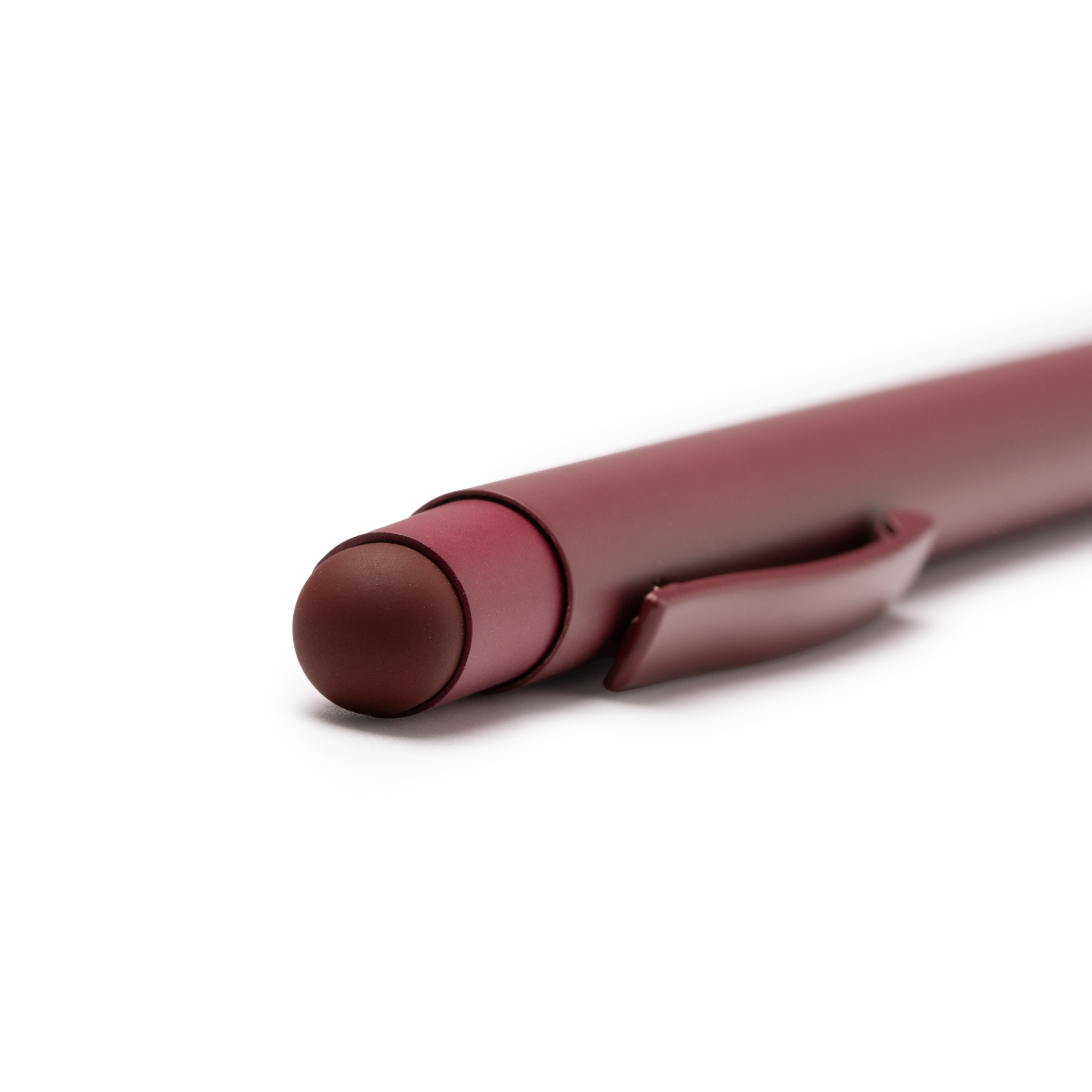 Bolígrafo metálico con elegante acabado en mate con puntero táctil en el mismo color. Carga jumbo de tinta azul. Disponible en diferentes colores.