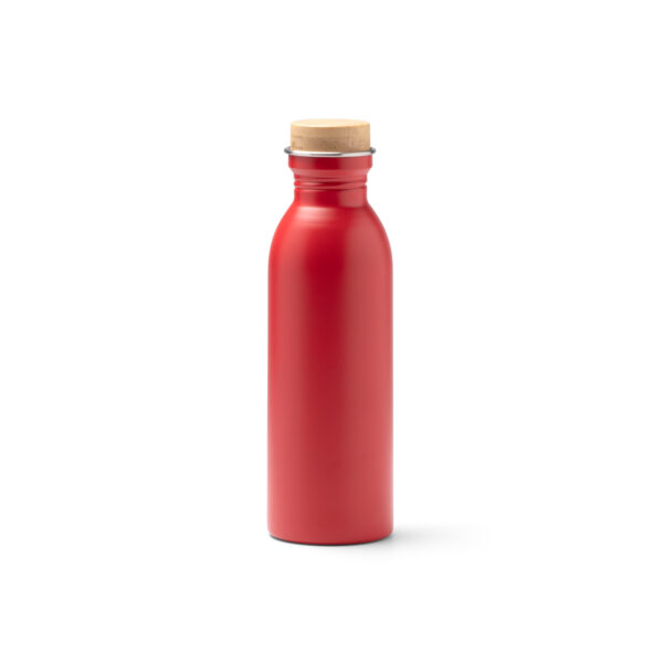 Bidón de acero inoxidable 304 reciclado de acabado mate con tapón de bambú. Capacidad de 650 ml