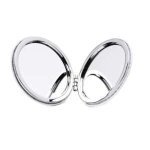 Práctico espejo plegable de bolsillo formado por dos espejos, uno normal y otro de aumento.Composición: PU y plástico.