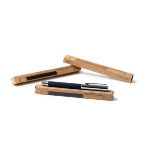 Bolígrafo roller con tapa, con cuerpo metálico combinado con poliéster reciclado RPET. Tinta azul.