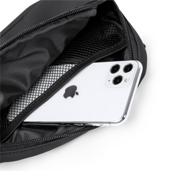 Riñonera bandolera elaborada en PU Leather. Cuenta con un compartimento principal espacioso y cinta ajustable para mayor comodidad y versatilidad en opciones de transporte. Combina estilo y funcionalidad para un uso práctico y cómodo en actividades diarias o de ocio.
