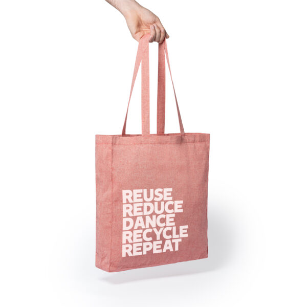Bolsa realizada en algodón reciclado de 140 g/m² en acabado jaspeado con asas largas de 70 cm.