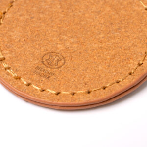 Llavero de piel reciclada en dos formatos con anilla metálica.