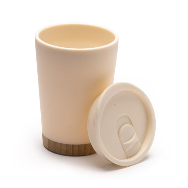 Vaso con cuerpo de PP reciclado de doble pared y base de bambú. Capacidad de 290 ml. Incluye tapa dosificadora, que le otorga seguridad ante derrames accidentales. Es una opción versátil, sofisticada y respetuosa con el medio ambiente para transportar bebidas de cualquier índole.