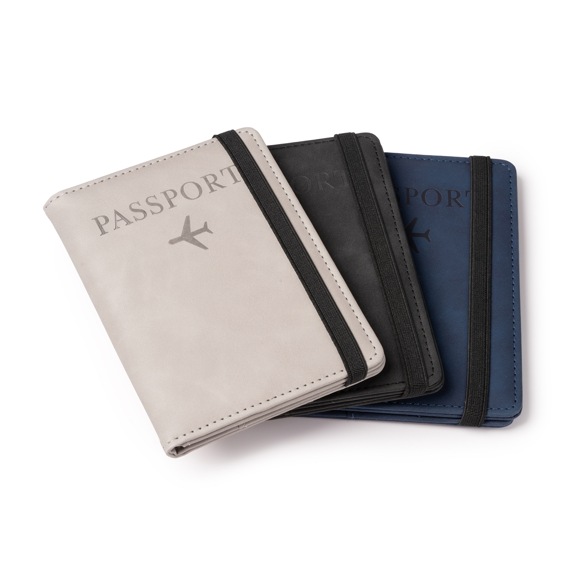 Funda para pasaporte realizada en PU Leather con banda elástica de cierre. Está equipado con 3 bolsillos interiores para pasaporte y documentos, 4 bolsillos para tarjetas y 2 para tarjetas SIM.