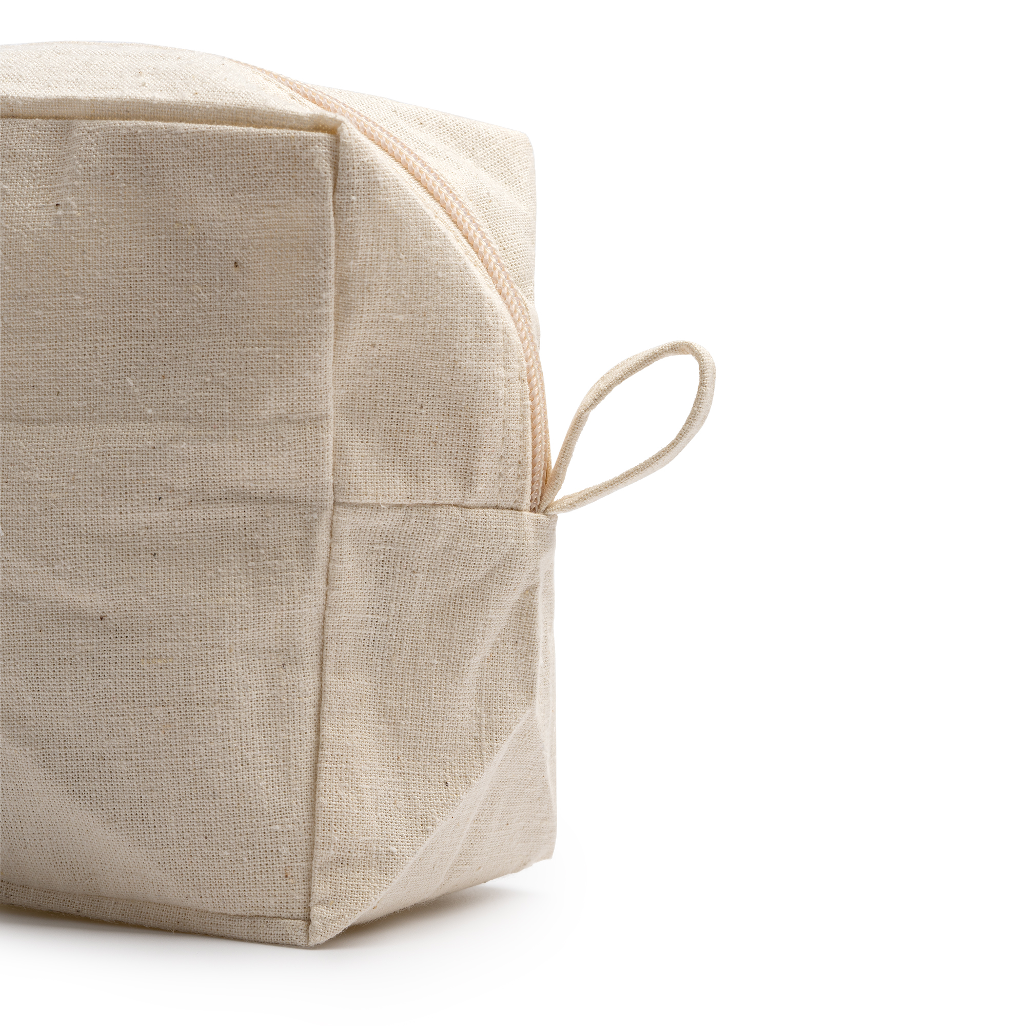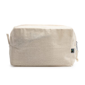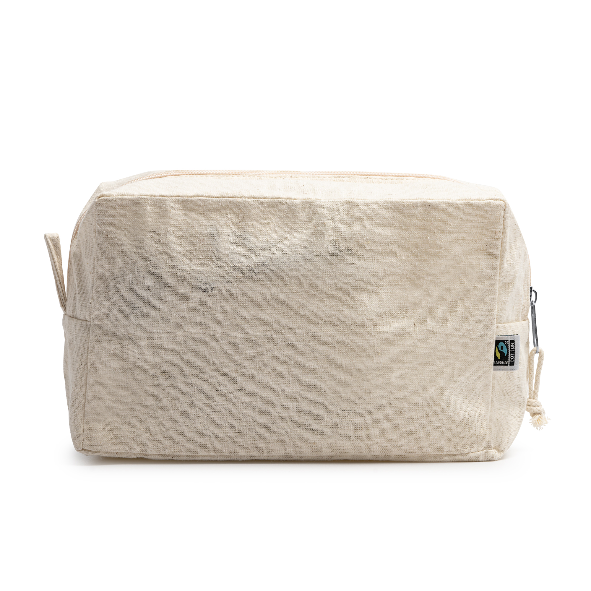 Neceser multiusos 100% algodón Fairtrade de 180 g/m². Bolsillo principal con cremallera y tirador a juego.