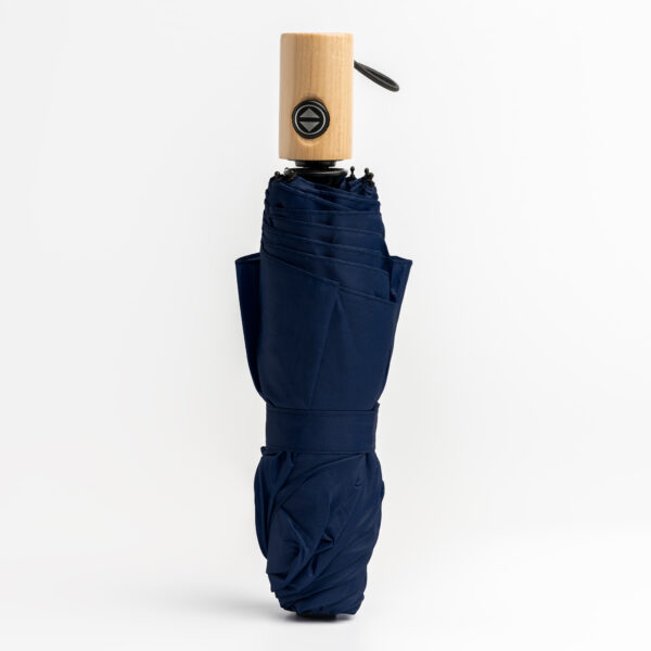 Paraguas de apertura y cierre automáticos con botón incorporado en el mango. Elaborado en tejido pongee 190T con funda a juego. Con varillas de fibra de vidrio y terminaciones en negro con mango de madera. Cierre con velcro a juego. Un paraguas antiventisca idóneo para los días de tormenta. Diámetro 100.
