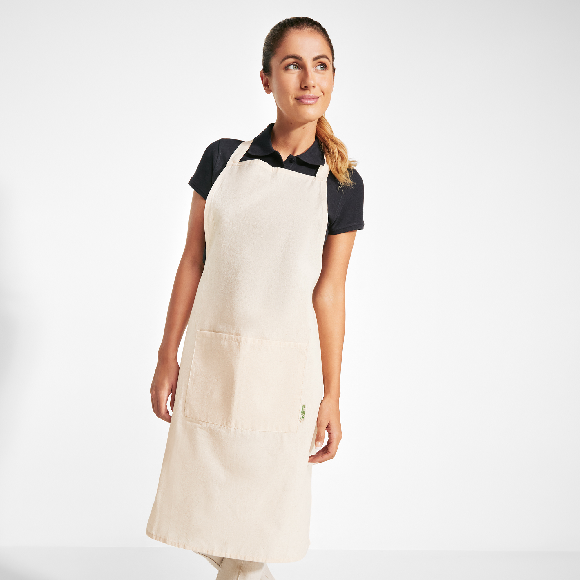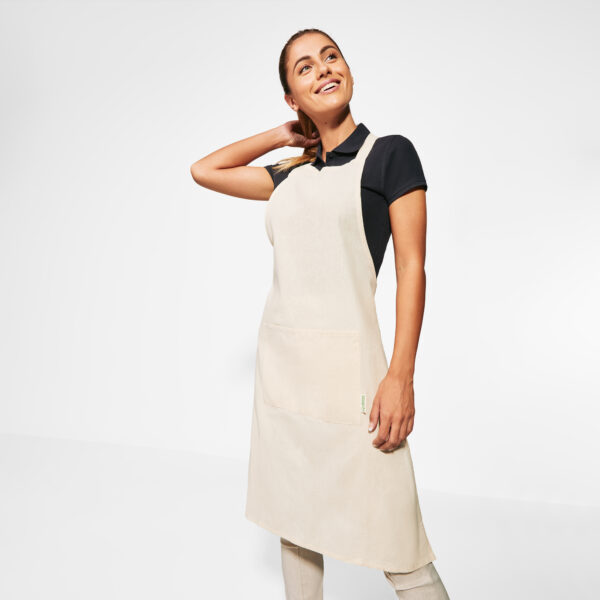 Delantal 100% algodón orgánico con bolsillo frontal. Composición: Algodón orgánico de 140 g/m².Observaciones: Talla única ajustable.