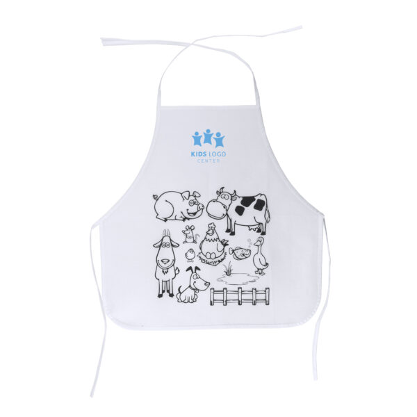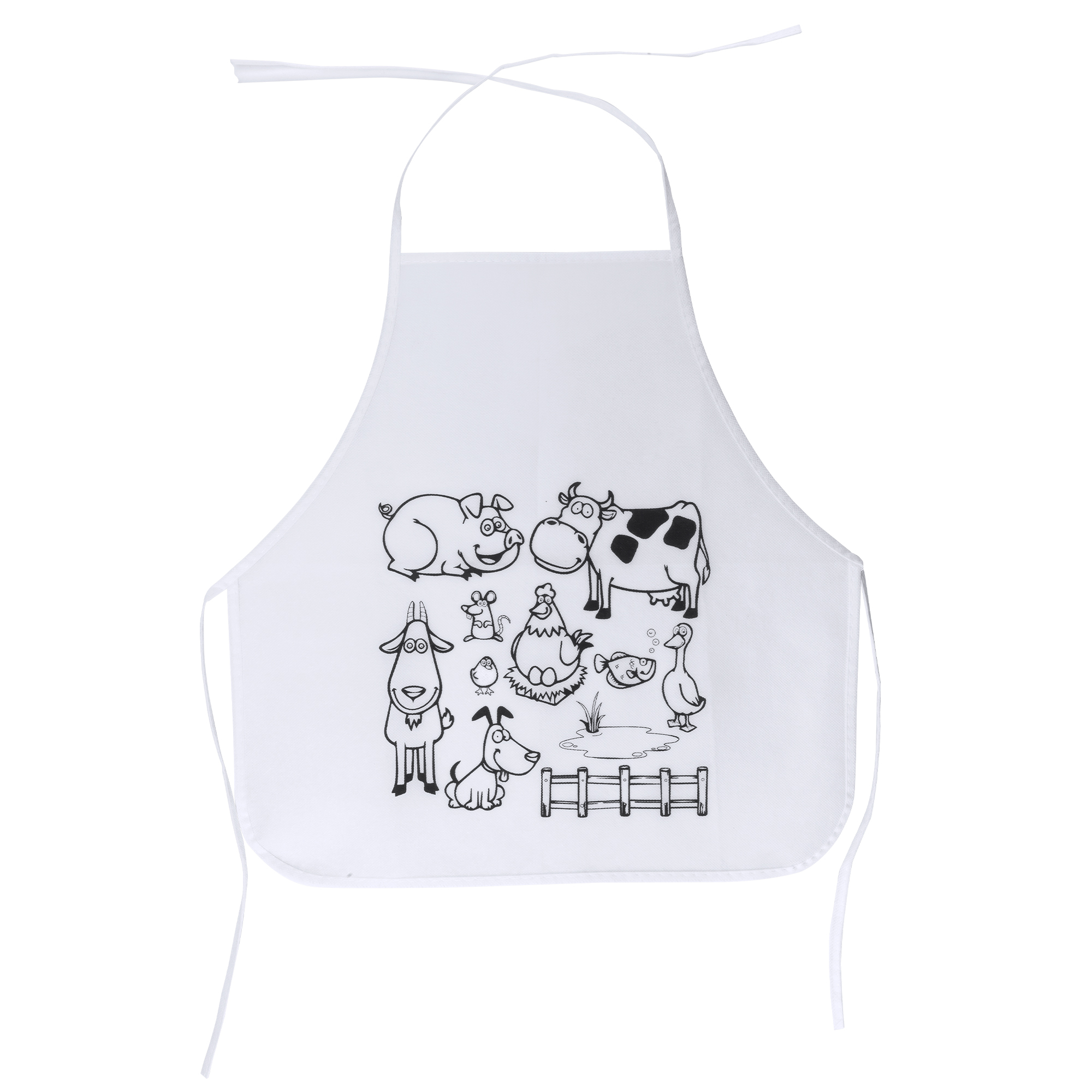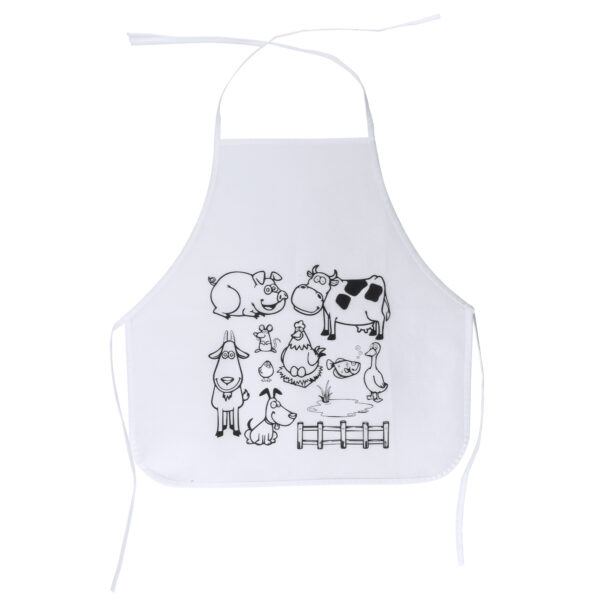 Delantal infantil de non-woven con diseño para colorear. Incluye 5 ceras en varios colores. Talla única ajustable.