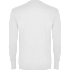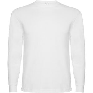 Camiseta de manga larga, costuras laterales, con cuello redondo de 4 capas y puños canalé 1×1. Cubre costuras reforzado en cuello y hombros.