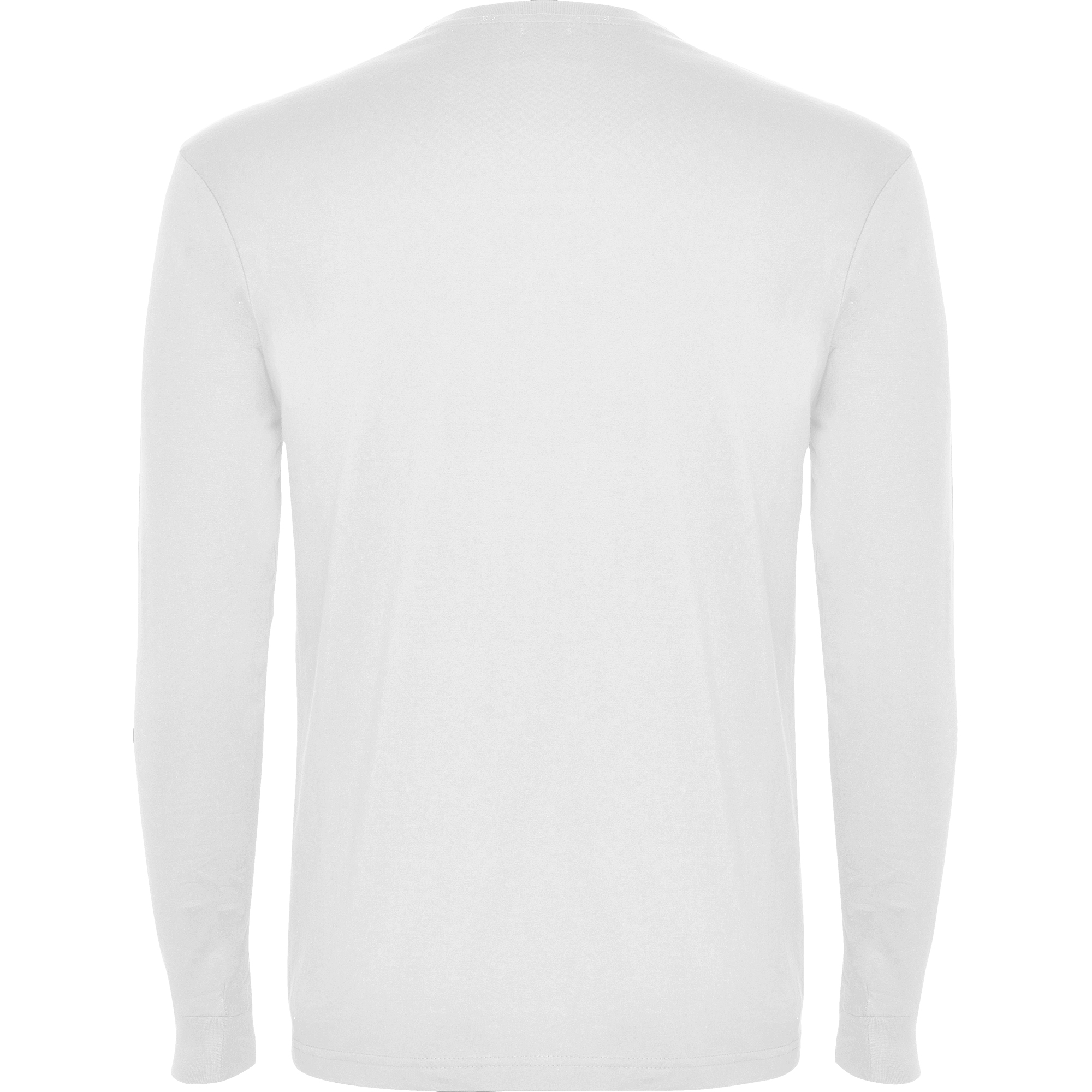 Camiseta de manga larga, costuras laterales, con cuello redondo de 4 capas y puños canalé 1×1. Cubre costuras reforzado en cuello y hombros.