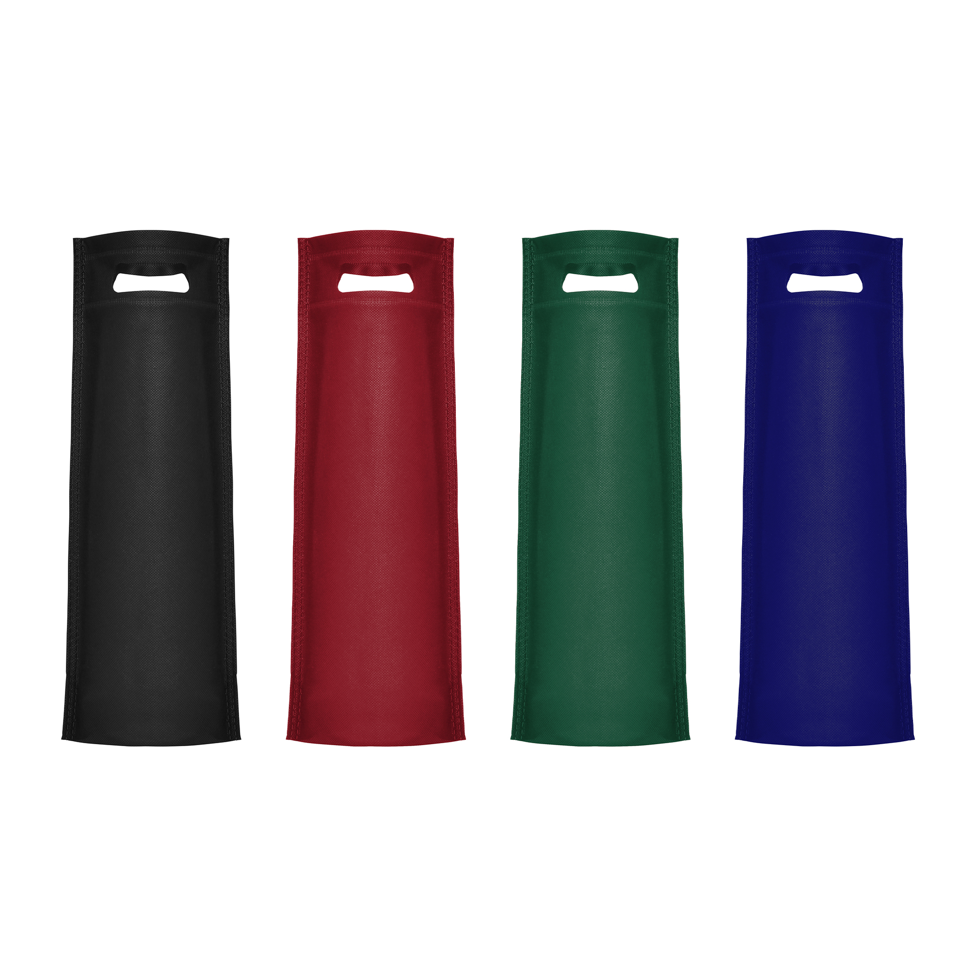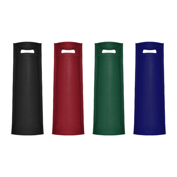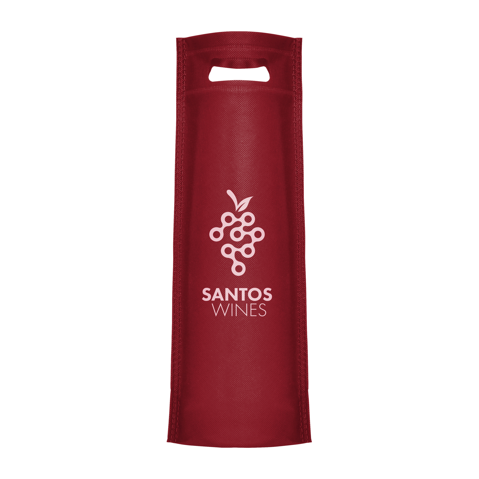 Bolsa termosellada especial para botellas, con fuelle en la base, fabricada en tejido non-woven (no tejido),con el asa troquelada.