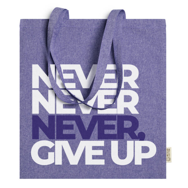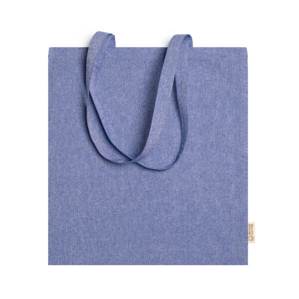 Bolsa 100% algodón reciclado de 120 g/m² en acabado jaspeado con asas largas de 70 cm. Composición: Algodón reciclado 120 g/m².