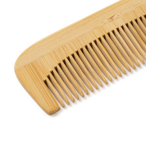 Peine elaborado de bambú con un mango de agarre cómodo y con una amplia superficie para marcaje.